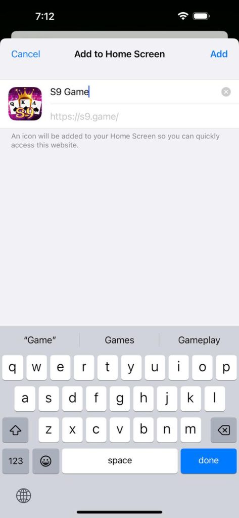 - Give a name to the icon, such as S9 Game or something else, and then just tap on the Add button .
